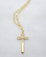 She's stacking and saintly! A trendy yet timeless cross pendant on the perfect textured chain.